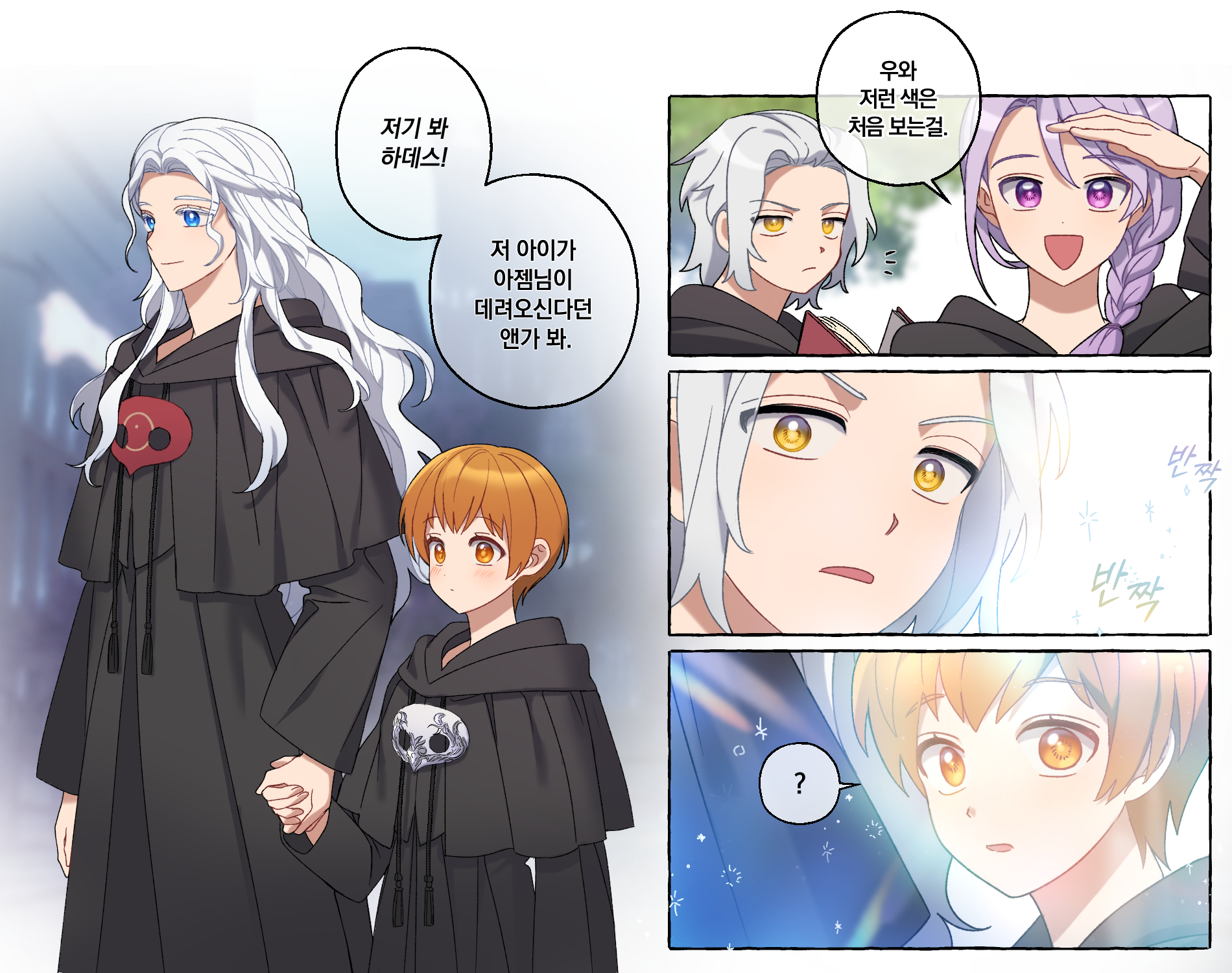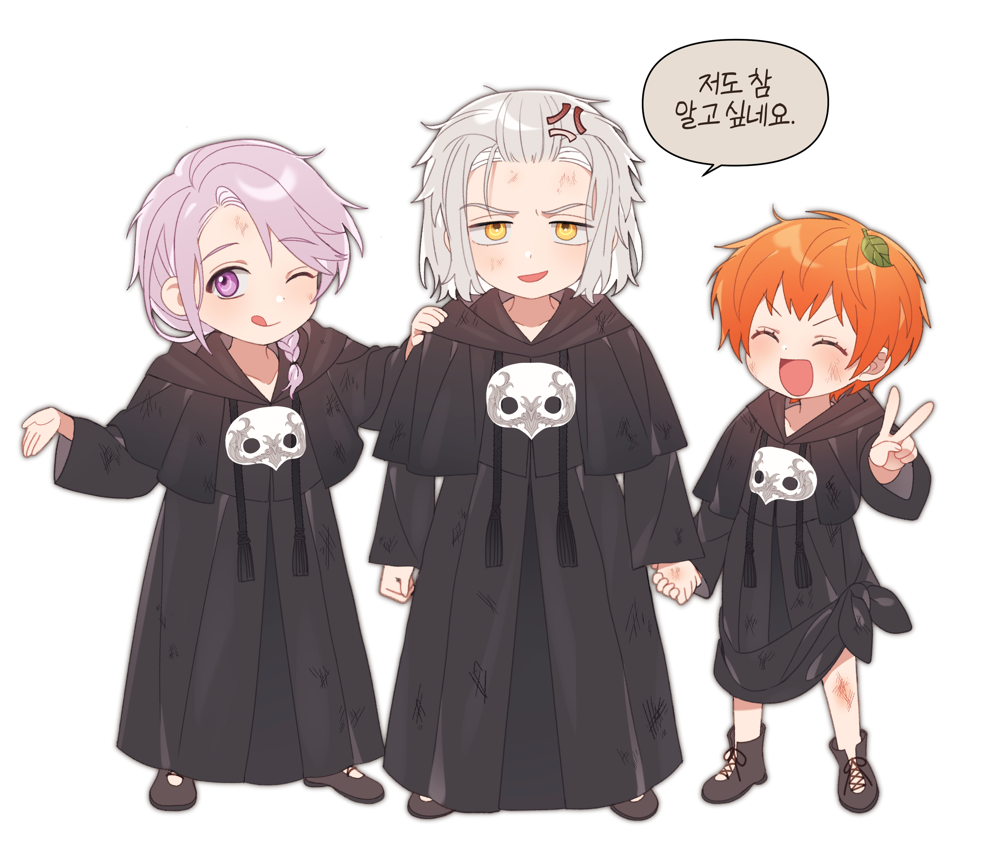 베네스와 함께 여행을 하는 것도 즐거운 시간이었지만 의무교육의 때는 다가왔습니다…. 베네스는 소테이라를 아모로트에 있는 아카데미에 보내주는 것이 좋은 경험이 될 것이라 판단해 입학을 결정하고 그녀의 부모님과 상의해 주민 등록을 도와줍니다. '당대 아젬이 외부에서 데리고 온 아이'라는 타이틀이 붙어 세간의 관심을 많이 받았습니다. 그렇게 입학 후 동기로 만난 것이 하데스와 휘틀로다이우스. 둘 다 혼의 본질과 색을 꿰뚫어 볼 수 있는 능력으로 꽤나 특이한 영혼 색인 그녀를 흥미롭다 판단했으나 처음엔 휘틀로다이우스만 친해졌습니다. 그도 그럴 것이 그녀는 사고뭉치, 별종에 엉뚱하고 눈에 띄는 창조 마법과 행동을 보였으니까요. 하데스는 첫인상이고 뭐고 두 번째 인상을 '이상한 바보' 라고 판단했습니다. 그녀도 그가 자신을 무시한다고 생각했기 때문에 시종일관 티격태격 싸우고 휘틀로다이우스가 그 사이에서 말리는 일이 허다했습니다. (좀 즐기기도 했지만요.) 하지만 아직 창조마법이 미숙한 아이들이 다니는 아카데미에서 벌어지는 각종 사건사고들을 생각지도 못한 방법으로 해결해 나가는 그녀를 보며 인상을 몇 번 수정하게 되고 차차 정이 들더니 나중에는 한껏 챙겨주는 방향으로 바뀌게 됩니다. 학기가 여러 번 지났을 땐 하도 붙어 다녀서 어느새 모두가 이 셋을 삼총사라고 부를 정도였습니다. 졸업 전후로 이들과는 계속 둘도 없는 친구들로 지냈고 거의 두 번째 가족과도 같았습니다.